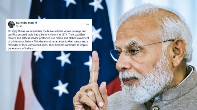 পোস্টে নরেন্দ্র মোদি লিখেছেন, বিজয় দিবসে, আমরা আমাদের সেই সাহসী সেনাদের স্মরণ করছি, যাদের সাহসিকতা এবং আত্মত্যাগ ১৯৭১ সালে ভারতের এক ঐতিহাসিক বিজয় নিশ্চিত করেছিল। তাদের দৃঢ় মনোবল এবং নিঃস্বার্থ সেবা আমাদের দেশকে রক্ষা করেছে এবং আমাদের ইতিহাসে একটি গৌরবান্বিত মুহূর্ত খোদাই করেছে। এই দিনটি তাদের সাহসকে সম্মান জানায় এবং তাদের অসাধারণ মনোবলকে মনে করিয়ে দেয়। সেনাদের এই বীরত্ব ভারতের বহু প্রজন্মকে অনুপ্রাণিত করে চলেছে।